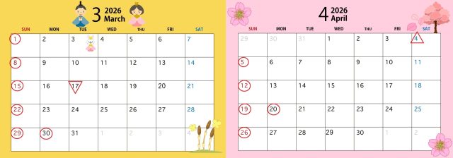3月20日、4月29日は営業いたします